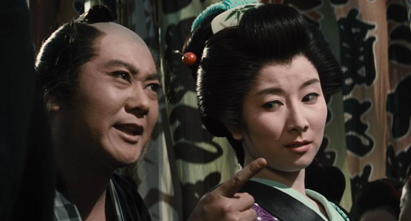 Further layering comes from the fact that Ichikawa’s 1963 film was itself a remake of a popular 1930s original, in which Kazuo Hasegawa had played the same two roles. Apparently Ichikawa was assigned the later version by the studio to which he was attached as something of a penance for recent films that hadn’t delivered. But even if it was imposed on him (and his screenwriter partner and wife Natto Wada), Ichikawa treated it as a glorious chance to experiment: the film revels in its glorious CinemaScope colour and a screen scale that gives exterior scenes as much visual style as the kabuki stage scenes, complete with a score that combines traditional Japanese motifs with elements of jazz and Hollywood lounge music (fascinating that Disney had been a crucial influence on Ichikawa!).