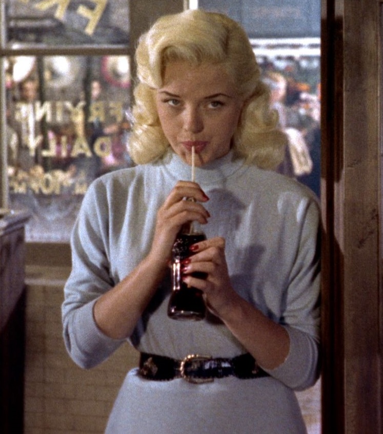 So far, so brilliant, though Wolf Mankowitz’s screenplay, adapted from his novel, is a clunker. Think magic-realist Eastenders, with a young boy buying a one-horned goat thinking it’s a wish-granting unicorn. Jonathan Ashworth’s Joe sports an improbably unblemished complexion and speaks with the poshest of accents. He’s living with mum Joanna (Celia Johnson) in rooms above the shop owned by David Kossov’s wise old Jewish tailor. Everyone here wants something, whether it’s a new steam press or an absent father to return home. Sonia (a Monroe-esque Diana Dors, pictured below) is waiting for hunky boyfriend Joe Robinson to propose, prompting him to become embroiled with a dodgy wrestling promoter and agree to fight Primo Carnera’s slippery, aptly-monikered Python.
