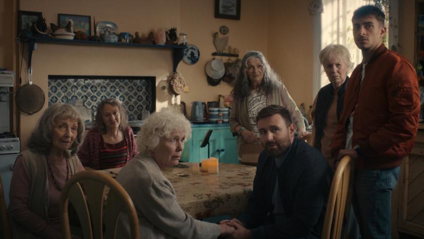 The main solace is the physio, Raf (Gaetan Garcia, pictured above with McArdle as Edward), who used to be Edward’s boyfriend and for whom he still yearns. Raf also does palmistry and drives a community care bus, useful for ferrying the mothers around to medical appointments – though Jean escapes at one point to a karaoke night at a pub – and to Galway, a six-hour road trip, to consult a medium (Niamh Cusack). The trip is, of course, bonding, even joyful, with the ladies dishing out competing stories about dealing with gay sons. And perhaps these mothers will even be able to care for each other, allowing Edward to branch out at last.