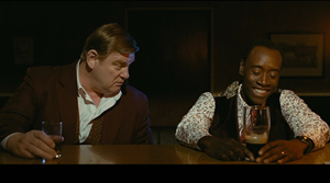 His idea of a great night out is an assignation with a couple of young hookers up from Dublin, whispered about out here in Connemara as if it's a Vegas-style Sin City. When Cheadle arrives to brief the local plod about the imminent arrival of half a billion dollars' worth of cocaine, Boyle goads him with casual racism, just for the hell of it ("Did you grow up in the projects?... I thought only black lads were drug dealers," etc). Challenged, he retorts disarmingly that, "I'm Irish Sir, it's part of my culture," (Gleeson with Don Cheadle, pictured below).