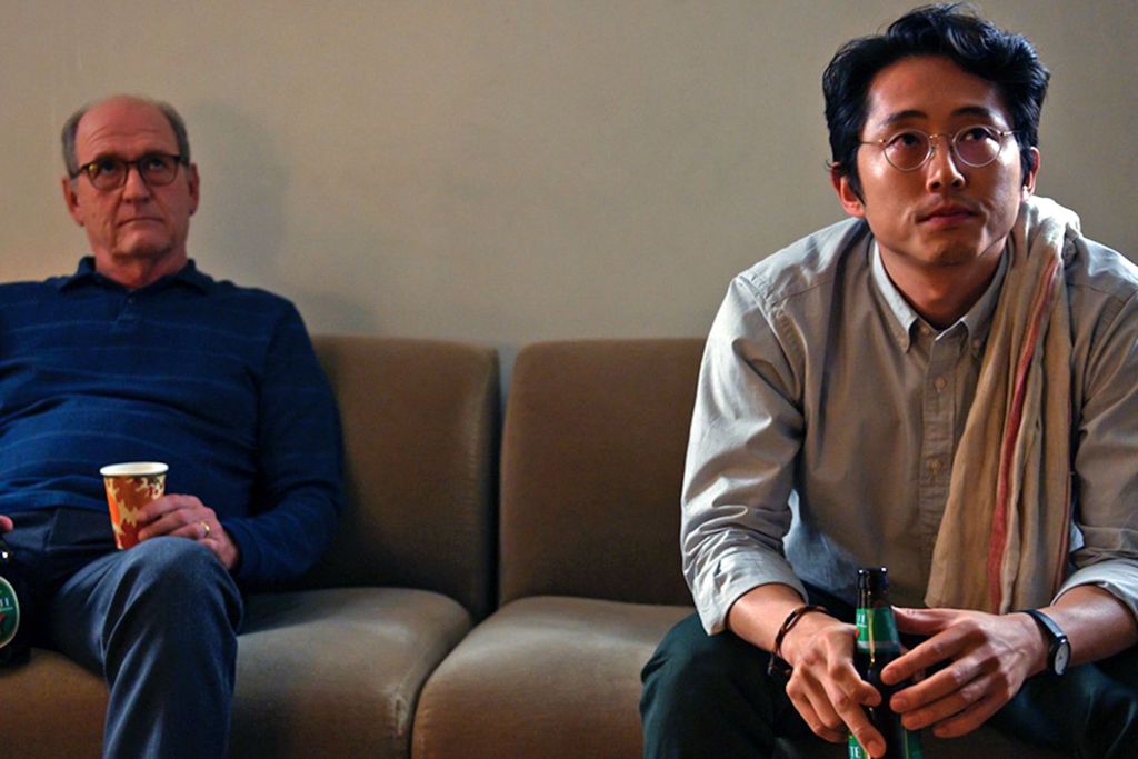 It's no wonder that the final shot plunges its last remaining visible character - Richard Jenkins's anxious paterfamilias, Erik (pictured above with Jayne Houdyshell) - into darkness. Karam's assemblage exist perilously close to the abyss: the duplex Chinatown apartment newly occupied by younger daughter Brigid (Beanie Feldstein) and her boyfriend Richard (Steven Yeun, late of Minari) is located not far from Ground Zero, which would seem to be the psychic point inhabited by each of these characters in different ways. One of them, we learn, might well have perished on 9/11 had luck not intervened.
