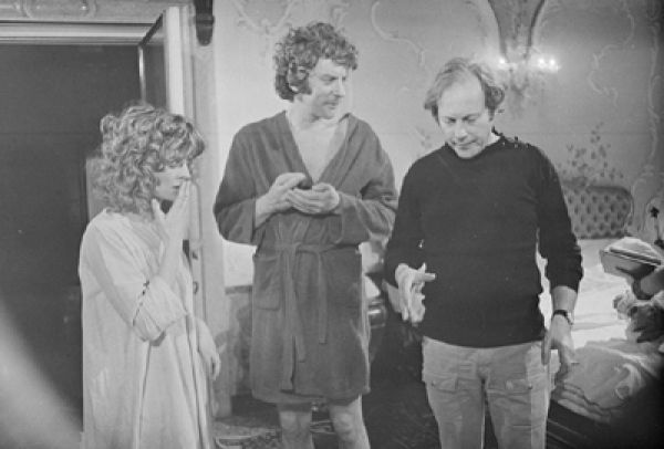 Adapted from Daphne du Maurier’s novella of the same title, Don’t Look Now, a psychological horror film, tells the story of a couple, John and Laura Baxter, played by Donald Sutherland and Julie Christie, (picured left, on set with Roeg) who are in Venice following the death of their daughter, where John Baxter is restoring a church. Laura Baxter is befriended by two elderly sisters, one of whom, to John Baxter’s disgust, claims to be clairvoyant and tells them that their dead daughter is trying to warn them of danger. It is by far Roeg’s most popular and accessible film - it recently came top of Time Out magazine’s poll of the best British films of all time, and at the time Sutherland and Christie were huge box-office attractions.