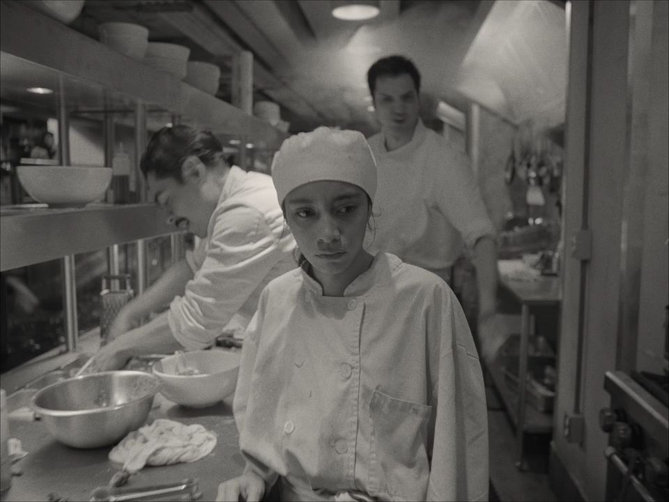 The lustrous black and white cinematography works brilliantly in the interior settings but isn’t quite so convincing in the outdoor scenes. There’s a poetic burst of colour in two key scenes when Ruizpalacios showcases his ambitions to elevate his film from a realist drama into a surreal vision. A chaotic first service is thrown into near biblical apocalypse when a soft drinks machine keeps pumping swirling dark liquid onto the floor of the kitchen.
