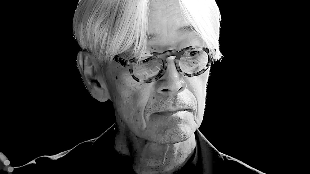 Material includes his music for The Sheltering Sky, The Last Emperor and Merry Christmas Mr Lawrence, alongside pieces from his days with Yellow Magic Orchestra and from his last album, 12. Seated at a Yamaha grand piano, with subdued studio lighting and a single table lamp illuminating the keyboard, Sakamoto applies himself to his task with ascetic single-mindedness. As his hands roll out deep, sonorous chords, explore bell-like higher registers or tap into pools of minimalist limpidity, Sakamoto’s face, framed by curtains of silvery-white hair, reflects moods of of amusement or solemnity. It’s a shock when he suddenly speaks, hinting at the otherwise invisible effort this is costing him. “I need a break. This is tough. I’m pushing myself.”