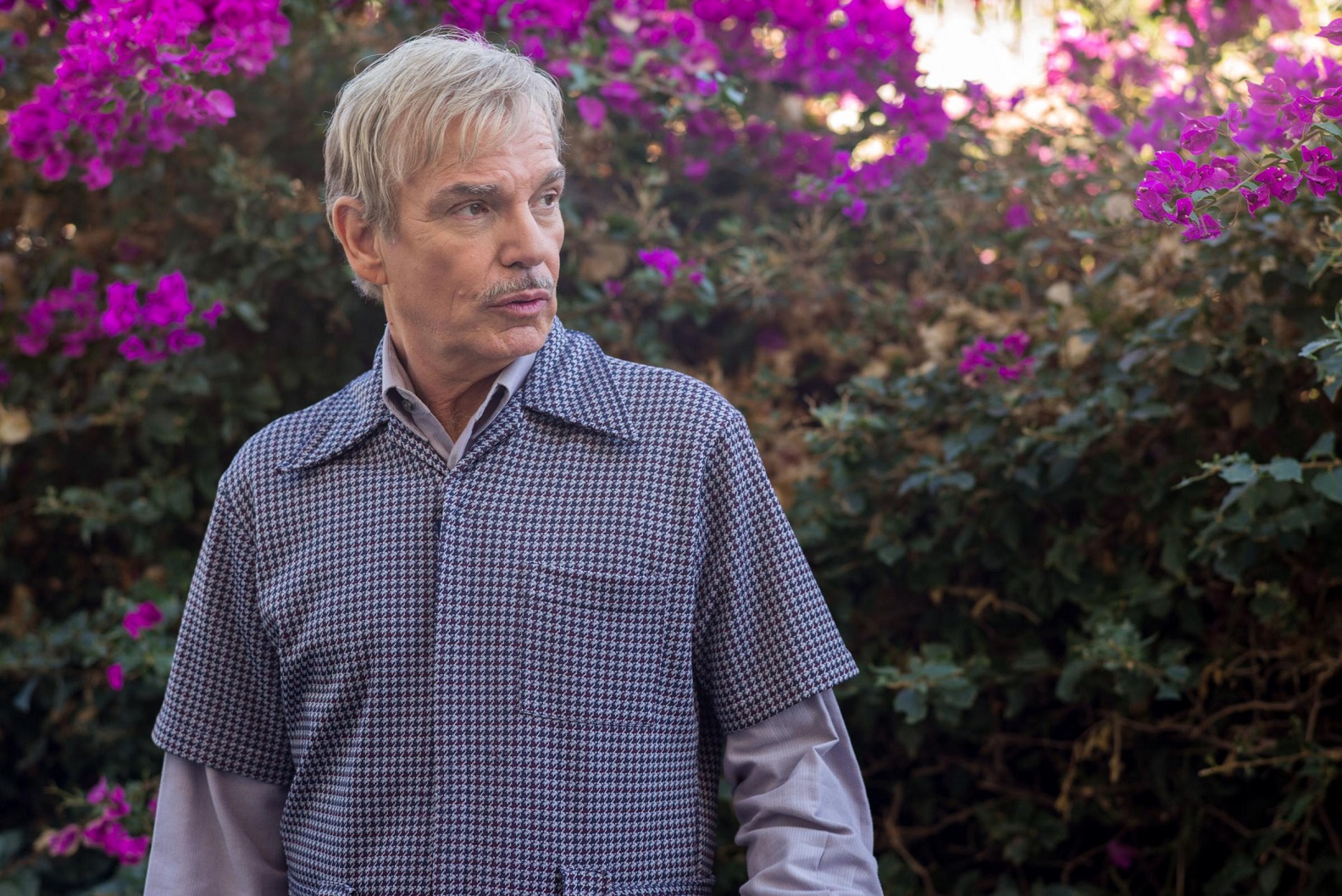 Actorly flourishes are more effective, especially Billy Bob Thornton’s mesmerically Zen, dapper gangster mentor (pictured above). Odessa Young’s seductive, desperate warmth and Giovanni Ribisi’s equally hungry, funny, finally tragic lunges at connection, sexual or otherwise, add to the finely balanced, understated equation. Only a late descent back towards addiction sinks into predictably jangled shadows and nightmare hues. Here Frey crushes a vial under his heel like a snake, defeating backsliding’s satanic temptation. Novelistic turns abound by now, his ambiguous “memoir” losing narrative conviction.