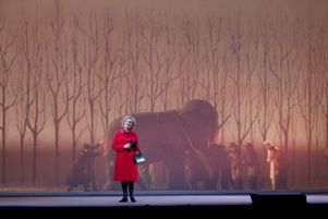 One thing that's become abundantly clear is how fabulously structured is Adams's whole. In Act One, the portraits of the men take us from Nixon's euphoria to Mao's enigmatic utterances - philosophy or senility, speculated an old Nixon adviser in an interval interview, hard to tell, but superbly done in heroic high-tenor declamation by the stalwart and seemingly tireless Robert Brubaker - and over to Chou. Act Two belongs to the women. First there's Pat's wonderment at an ambiguous brave new world, one of the great opera arias of the 20th century with Adams's incredible word-setting well matched to Goodman's metaphysical poetry ("Let the expression on the face/ Of the Statue of Liberty/ Change just a little; let her see/ What lies inland"). Carolann Page was fine on the premiere recording, but the part now belongs to Janis Kelly (pictured above left): another longterm operatic warrior perfectly in control both of her dangerously high-lying phrases and of her utterly believable characterisation.