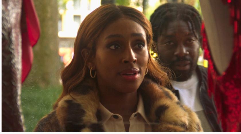 Pretty Red Dress opens with a classic Motown-esque girl group belting out a show tune before cutting to Travis (Natey Jones) as he leaves prison. Waiting for him outside is Candice (Alexandra Burke); she’s sitting in her Audi, singing along to the radio.