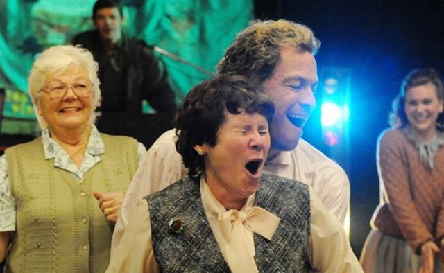 Drama thrives on contrast and juxtaposition, and both abound here as the Welsh locals - the men, in particular - regard their colourful visitors from a wary distance, as if aliens from another land. A local widow (Lisa Palfrey, doing well by a determinedly unsympathetic role) isn't so benign an observer and is determined to rout "the gays" in any way necessary, her two sons falling into bigoted line on cue (though one of them resurfaces near the end where least expected). Flying a more inclusive flag (more or less literally) are the bluntly spoken Hefina (Imelda Staunton, pictured above with West, in especially doughty form) and Nighy's movingly indrawn Cliff: the actor's softly spoken, "I'll take an extra gay" - his remark made in response to the visitors' housing needs - among the more priceless moments of this idiosyncratic talent's singularly diverse career.