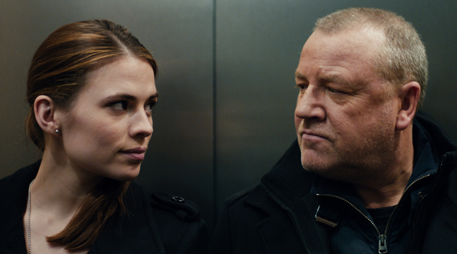 Especially counter-intuitive is Regan's relationship with fellow officer Nancy, played by Hayley Atwell (pictured right). If the notion of the picturesque Ms Atwell as a kicking, punching, shooting, boozing Flying Squad officer is enough to make you clutch the furniture for support, it's exceeded by the idea of her being wildly turned on by a wheezy old fat bloke who can barely get up a flight of stairs. This does at least generate one amusing scene where our heroes go out for a meal and slobby Regan has to eat lettuce while everybody else is gorging on deep fried brie and chips.
