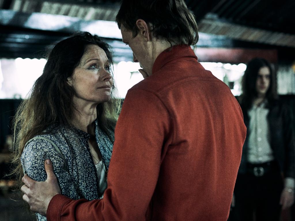 Kelly grows up in an impoverished, outback Irish family led by necessarily feral mother Ellen (The Babadook’s Essie Davis, pictured below left). This maternal Lady Macbeth is glamorous, cunning, hopelessly defiant and fearsomely vicious. First recalled by Ned pragmatically giving a blowjob to the local policeman, she later violently drives her husband from the house for drunken brutishness, before police mistreatment leads to his death. Her pride buoys Ned and dooms him, when she spurns a chance of tainted English education. He’s instead schooled in savage possibilities by cultured killer Harry Power (Russell Crowe, pictured bottom left) and the grim attentions of the English-born police. Played by pale, blond Orlando Schwerdt as a malleable, watchful boy, George Mackay’s bony face and untrusting eyes retain that wrecked child in adulthood, only as a last desperate act becoming the fearsome criminal of legend.