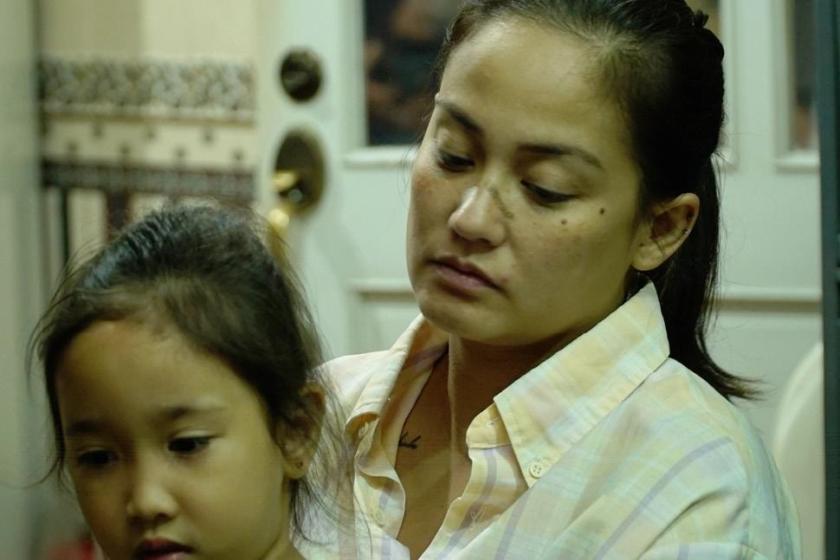 Gutierrez and his DP play out the scenes that follow with a quasi-documentary vérité that evokes a real sense of street life in this crowded, low-rise barrio which never seems to sleep. There’s real accomplishment in the way that Reyles’s images turn the bleached late-night colours into an unfriendly dawn as Joy and her daughter are taken from police station first to hospital, and then directly to the courts where she initiates the prosecution process. With an interest that surely approaches visual anthropology, we watch how the generally, and genuinely sympathetic way in which she is treated – she’s in the hands of the dedicated VAWC (Violence Against Women and Children) unit – is qualified by the close proximity of the crowded corridors in which proceedings take place, one in which the couple repeatedly encounter one another with their different escorting officers.