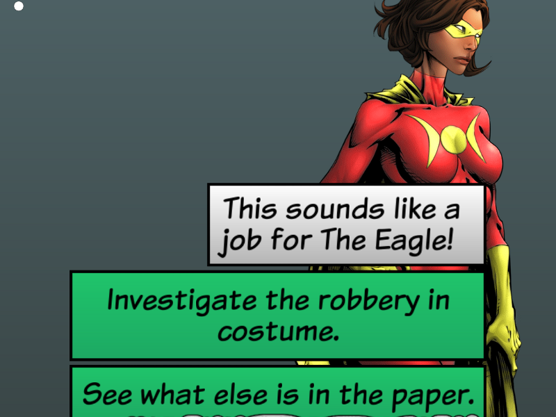 That adventure is still here but Tin Man have decided to present it more like an interactive comic than a book. Appropriate, given the superhero theme, but not a complete success as we shall see.
