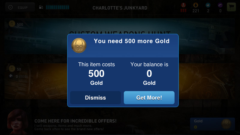 Wonky controls would be forgiveable if the game was more engrossing, but sadly the developer's real ingenuity seems to have been poured into creating the in-app purchasing system (splash the cash, left). Like Candy Crush before it, The Drowning is not so much a game as an engine for siphoning cash from its players. To progress in the game you need to upgrade weapons (to defeat tougher monsters), buy fuel (to travel to new locations) and most irritating of all, to buy time to actually play the game. You quickly run up against unbeatable foes, inaccessible areas and a stingy daily play limit, all of which can be overcome with a little in-app payment.
