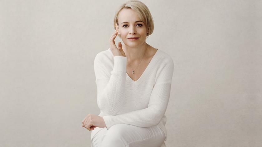 Gemma SummerfieldSalieri? Well, maybe he wasn’t such a duffer after all, if this piece reflects his imparted skills. Taken from an operatic text where a king jealously threatens two young lovers, it’s for soprano (Gemma Summerfield, pictured right by Scott Cadenhead) and tenor (Ben Johnson), and contains a lovely central slow section where the voices weave together as the music develops and violins decorate the plaintive closing themes – and a dramatic final movement. Sir Mark, conducting an orchestra of 36 strings (and there are no oboes), drew limpid, Italianate sounds from this, and Gemma Summerfield’s voice glided effortlessly over the whole texture.