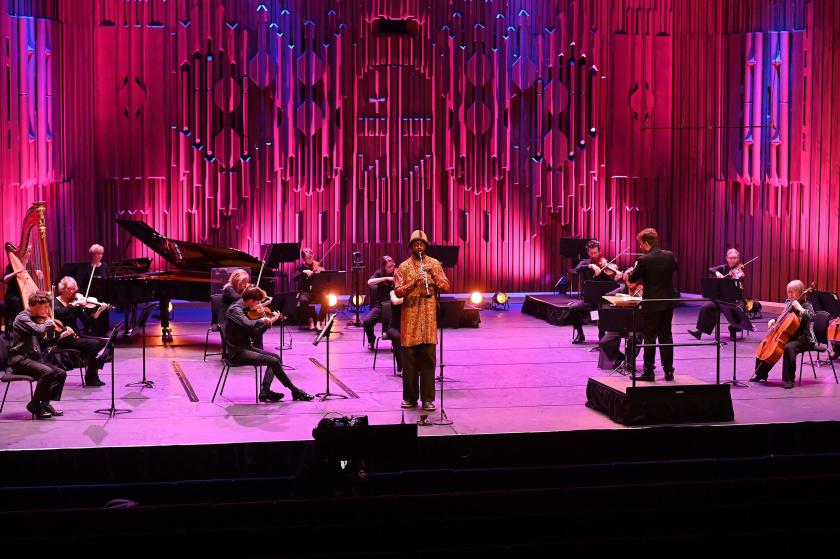 One of the prime movers in the UK’s flourishing jazz scene, clarinettist, saxophonist and composer Shabaka Hutchings (Sons of Kemet, The Comet is Coming, Shabaka and the Ancestors) took to the Barbican stage to perform Igor Stravinsky’s Three Pieces for Solo Clarinet, composed in 1919. Hutchings shaped the first movement’s metrical asymmetry with great care, its liberal use of acciaccaturas and chromatic descending motif at times recalling the introduction of The Rite of Spring. Written entirely without bar lines or time signature, Hutchings made an impressive fist of the rapid-fire arpeggios and vertiginous registral leaps of the second movement, although the very opening phrase suggested that the notes weren’t entirely secure under his fingers. With its overt nods to the ‘Ragtime’ from The Soldier’s Tale, Hutchings handled the constant metrical shifts and breathlessness of the third movement with real conviction.