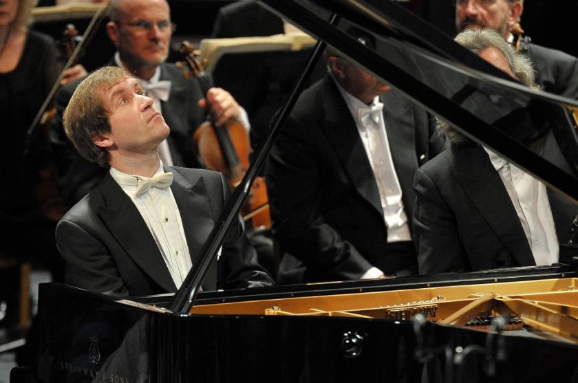 First there was that old Rachmaninov warhorse to negotiate. Neither Lugansky (pictured left and above), for me infinitely the finest of the composer’s current champions, nor Temirkanov were going to fall prey to routine or excess sentimentality. Lugansky’s opening bell chords were deep and resonant, his command of the strings when the sweeping chant-melody returns in martial mode at the end of the first movement magisterial, his ability to dwindle lines to near inaudibility at the phrase-ends spellbinding.