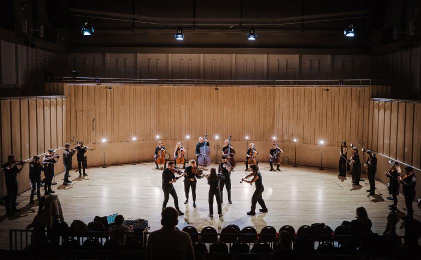 I must admit that the narrative of the choreography – if there was one – was lost on me. But that’s not to say I didn’t appreciate its merits. Moving around and hearing different parts played in different places really focuses the listening from the musicians’ point of view, and by design, enhances the synergy of the ensemble. For the audience, the swirling displacement of varying melodies gave an individual dimension to the overall aural effect, and for those used to a "typical" classical concert format, a slightly different visual focus can pique curiosity in new ways. Besides, for the most part, it looked pretty, with Albin Ǻkerman’s skilful lighting design enhancing the overall mood. At one point in the Tchaikovsky the stage lights were dimmed, and the upper string players revolved around the lower, giving the effect of one of those little carousel tealight holders often seen in gift shops at Christmas, with the players’ shadows softly rotating against the walls.