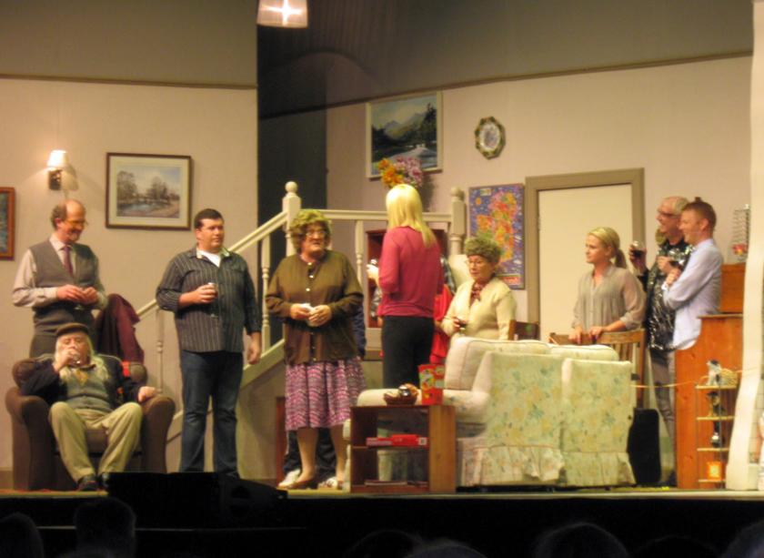 In a theatrical setting, the shortcomings of O'Carroll's supporting cast are all too obvious and there's far too much corpsing, a lot of which looks rehearsed. When he's not on stage the energy instantly drops, and when he is some of the cast just stand around waiting for him to make a funny. But Gibney (O'Carroll's wife) and his sister Eilish O'Carroll - as neighbour Winnie, the butt of many of the jokes - stand out.