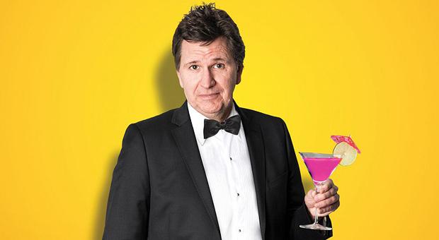 About halfway through, he starts playing off against supposedly subliminal images and words that appear fleetingly projected behind him; he makes much theatrical hokum of the idea that he is being fed his lines via an earpiece from an inept backstage stooge; he goes into an immensely funny routine about Sean Connery that involves a spot-on impersonation; he rides close to the edge with material about Bill Cosby and Michael Schumacher, garnering not-entirely-sure rumblings from the crowd.