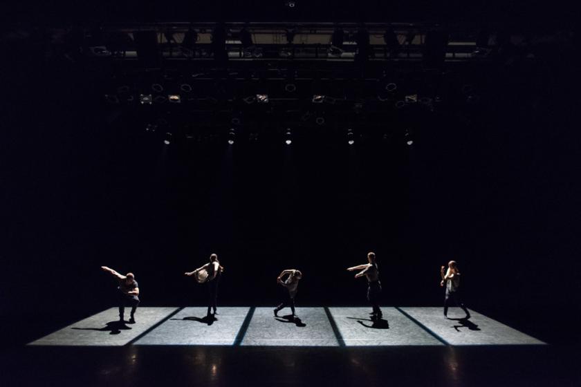 The quintet Piece No. 43 which closes the show, another new one created for this tour, probably comes the closest to recapturing the excitement of Two, my favourite Maliphant piece (the one with a dancer in a box of light). Its opening segment is a too-long sequence of slow-mo poses, each of the five dancers isolated in their own rectangle of light, which occasionally flickers as if Hulls is playing the lights like piano keys. When the speed doubles, the scything of gold-lit arms and hands through space leaves the familiar Hulls afterburn on the retina; we are back in the magical realm of the fire-juggler, and when Yu-Hsien Wu tumbles and whirls on her knees through a diagonal corridor of glowing rectangles, bobbing on the floor like pontoons, we are re-entering the realm of speed and excitement.