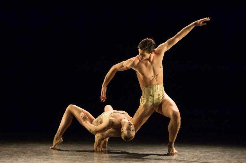 One of the surest signs that a performance deserves an enthusiastic write-up is that it leaves you humming its tunes and wanting to dance its steps on the way home. With classical ballet it's not too dangerous to give in to the urge and allow yourself a few discreet wrist twiddles, but with William Forsythe's In the Middle, Somewhat Elevated, the last piece on the Modern Masters bill, watch out! This 1987 classic is so thumpingly badass, so saturated with in-your-face bravura, that channelling its spirit will make you want to vogue across four lanes of traffic - or at least bop your head in a violent manner disturbing to other commuters. I mean, we're talking about a piece whose score (by Thom Willems) is basically just headbanging blasts of synth at max volume, and whose only set decoration is a pair of gold acorns, dangling brazenly above the stage like a big pair of cojones.