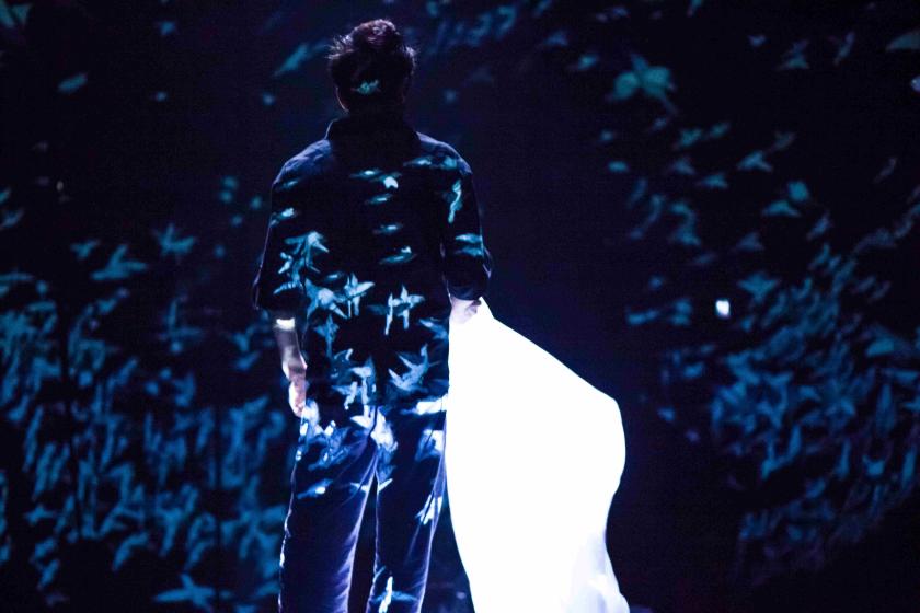 Collaborators Ars Electronic Futurelab ornament the stage with wonders of light and animation: a flock of white birds which swirls like a fish shoal, pictures of fantastical castles, gates and trees, and a shimmering electrical outline of Odedra with which he (wonderful coup de théâtre!) shadow boxes. But the best effects are the simple, non-computerised ones: there is an incredibly clever sequence where sheets of A4 are dispensed from the lighting rig and then whipped into a storm by a circle of glinting silver electric fans while Odedra frantically tries to capture and corral them with a box and two huge brushes. The theatricality of this production establishes Odedra as a powerful stage presence, but it does leaves less room for dancing: a shame only because his dancing is a pleasure to watch, particularly when he returns to the Kathak classical idiom and shows us the talent and training that first brought him to Khan’s notice.
