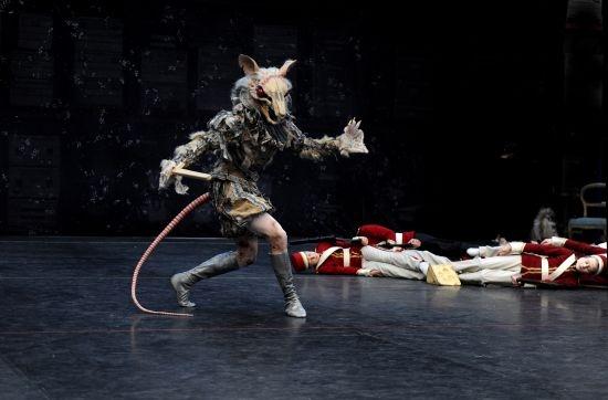 Faced with the choices of a very young Clara or a teenaged, almost-woman Clara, Wayne Eagling, ENB artistic director, has plumped for a mash-up. Clara is seen first as a little girl (danced by the first of many children in the production) turning at midnight into an older one who will imagine herself as Sugar Plum Fairy later. To service this, Eagling introduces the leading man quietly into the action as Drosselmeyer's nephew, or magic assistant, who kindly dances with the very young Clara and then turns up as the figment of her romantic imagination. The Nutcracker remains a separate role, dancing unrewardingly behind his spectacular mask (pictured above right, © Richard Haughton/ENB).