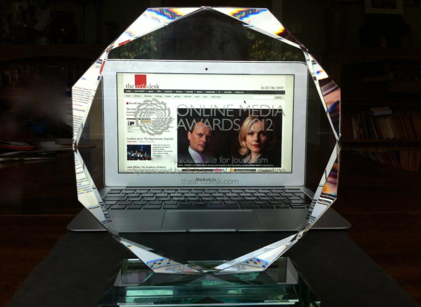 The Arts Desk has been voted Specialist Journalism Site of 2012 at the Online Media Awards. In a celebratory dinner at Arsenal's Emirates Stadium recognising "the best and boldest of online news-based creativity and also the most original", The Guardian were the major winners with five awards, but even their new Data Store section was outgunned in the Specialist Journalism category by The Arts Desk.