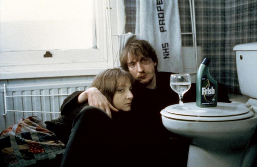 Though Leigh’s work – which spans 56 years of stage, television, and film – is rightly known for its focus on working class life, Naked is more about the underclass. Nearly everyone on screen is out of a job or underemployed. If not actually homeless, they’re in between spaces, subletting, flat-sitting, or on the run. The protagonist Johnny (David Thewlis on his breakout performance) is first seen raping a woman in a Manchester alley. He steals a car and flees to London in hope of crashing with his estranged girlfriend, Louise (Lesley Sharp).
