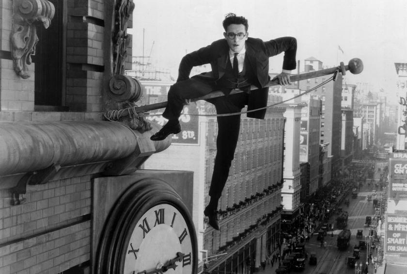 Comparing Harold Lloyd with Keaton and Chaplin is difficult. Though the input he brought to his films was crucial, Lloyd didn’t write or direct, and there’s much discussion as to whether he was a genuine comedian or a straight actor playing the part of one, his matinee idol appearance befitting a conventional leading man. Lloyd’s trademark horn-rimmed spectacles were suggested by producer Hal Roach, concerned that his star property was too handsome to be funny. The glasses are a superb prop, Lloyd’s normality making his physical comedy all the more effective.