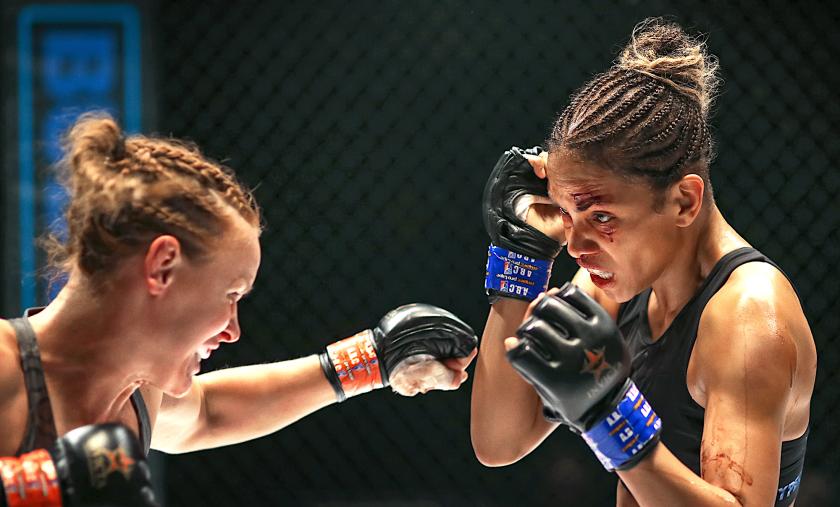 She plays Jackie Justice, a successful MMA fighter (that’s Mixed Martial Arts, otherwise known as cage fighting) whose career has disastrously stalled as her personal life has fallen apart. We meet her while she’s living in Newark, New Jersey with a tattooed slob called Desi (Adan Canto), who claims to be her manager but is making such a great job of it that Jackie is now lapsing into alcoholism while working as a house cleaner.