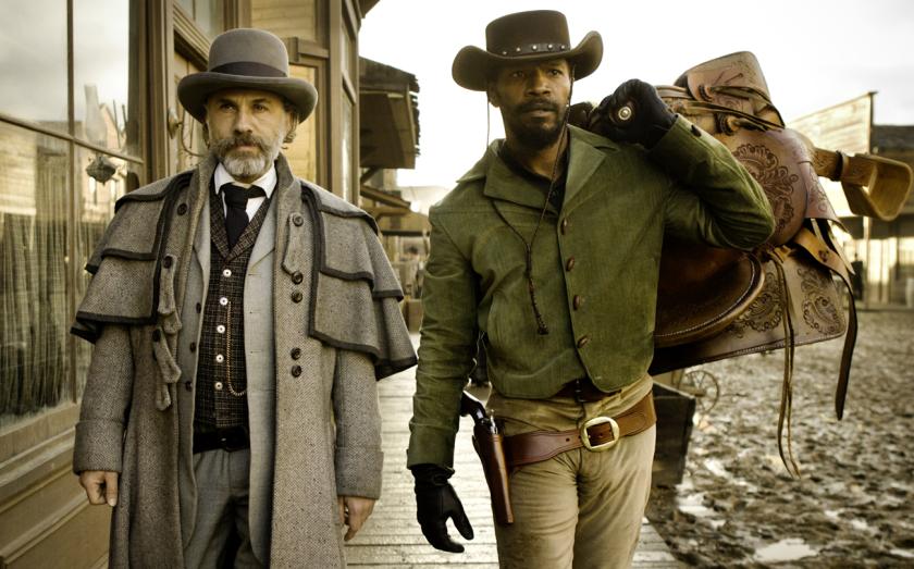 The year is 1858, two years before the American Civil War, and the setting "somewhere in Texas". We watch as a pair of slave trading brutes move their shackled men by night. From the darkness emerges the unlikely figure of Dr King Schultz (Christoph Waltz) riding his mobile dentistry wagon - giant molar waggling atop it on a spring. This seemingly benign, erudite and highly eccentric gentleman is actually a bounty hunter, here for a slave named Django (Jamie Foxx) who can help him identify a trio of brothers who've escaped justice and are worth a pretty penny. One bloody confrontation later and Django and the other slaves are free.