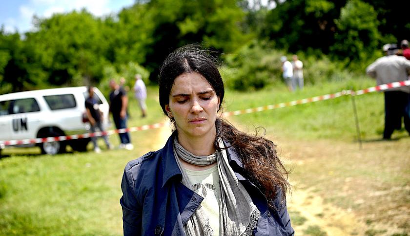 The story centres on Fahrije Hoti (Yllka Gashi), trying to eke out a living and bring up her two children in an environment steeped in the virtually medieval Albanian code of patriarchal dominance, where women are expected to be mothers and home-makers. Feminism hadn’t even got as far as being a dirty word – the concept had just never existed. Fahrije’s husband has vanished without trace, though she has recurrent dreams of him drowning. The film opens with a sequence of her searching through body-bags in the hope of finding him. Later, a UN forensics team think they’ve found his clothes, but it’s a false alarm.