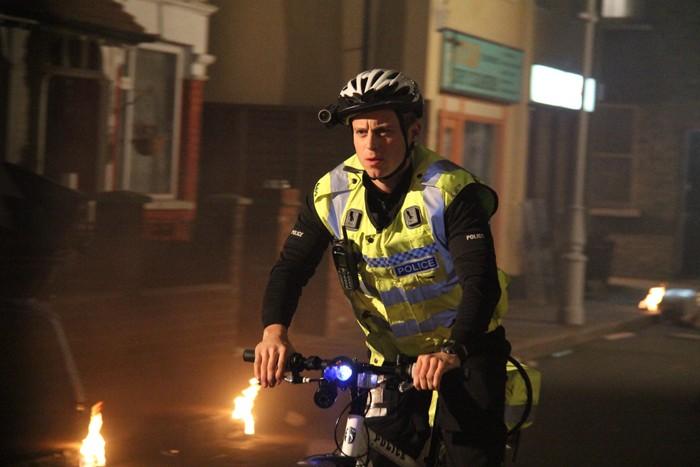 The odds are already stacked towards absurdity when your hero’s called Baz Vartis, played rather winningly by comedian Kevin Bishop as a cheeky chappie who probably didn’t have that many brains even before he bashed his head in an incident, but has become something of a rightwing moron after it. Add in the fact that when this copper pulls up to the latest incident, he’s being supported by a Smith and Wesson (the bike, that is, not the revolver - and that's not the director's invention, actually).