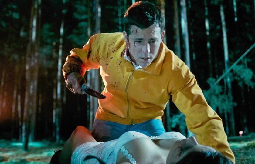 Jerry lives in a disused bowling alley out in the sticks, where he holds lengthy conversations with his dog Bosco (a homely, slow-witted mutt) and cat Mr Whiskers, who spits bile in an angry Scottish accent (Jerry and pets, pictured above). If Bosco is the voice of hearth and slippers, Mr Whiskers is a ginger tabby Mephistopheles, urging Jerry to give in to his darkest instincts. These first alarmingly emerge when Jerry chances upon Fiona, stranded in the rain with a stalled car after her karaoke night, and gives her a ride home. Except their journey is interrupted by a deer crashing through the windscreen, which grotesquely begs Jerry to finish it off by slitting its throat. A horrified Fiona runs off into the woods, only to suffer another coup de grace from Jerry (almost inadvertently, it seems).