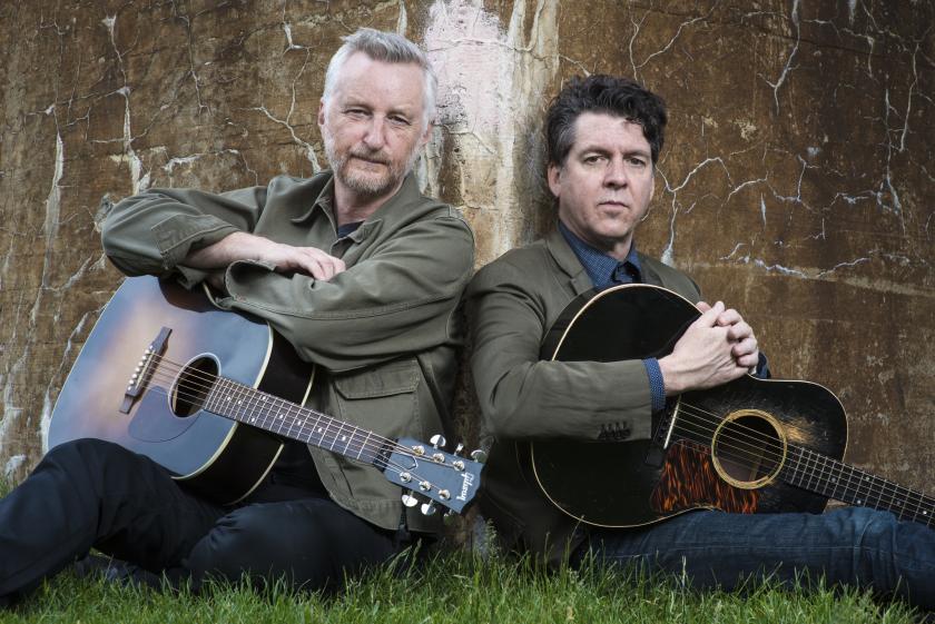 Only a small portion of the evening is devoted to Bragg’s back catalogue. The concert is based around Bragg and Henry’s recent album, Shine a Light: Field Recordings From the Great American Railroad, which they recorded on an epic train journey across the States, from Chicago to LA, via the Texan Rio Grande border. The night starts and ends with them both playing this material while in between, just prior and after an interval, Henry and Bragg do small solo turns,.