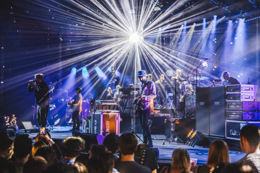 Punctually, following a tension-building countdown, Elbow entered the blue-lit stage at London’s legendary Roundhouse, beers in hand, and gestured the 1500-strong audience into a mass toast. With his slight stoop, soft Manchester accent and wayward estate-agent appearance Guy Garvey’s frontman persona takes more from familiar folk Daddies like Loudon Wainwright III than from the styled superstars also headlining at the iTunes Festival.