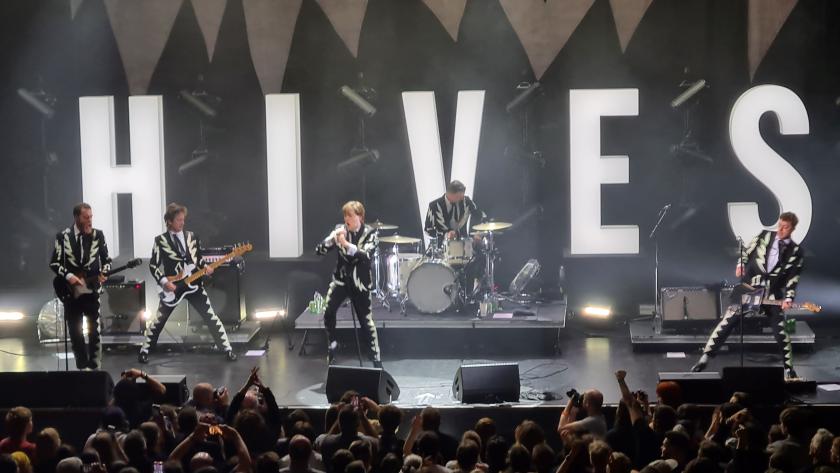 Frontman “Howlin’” Pelle Almqvist is keen for us not to confuse The Hives with lesser mortals. Early on, he reminds the audience that this very venue was where ABBA first moonshot Sweden to pop immortality (when they won the 1974 Eurovision Song Contest with “Waterloo”). The Hives, he says, are the conclusion of that success story. His firecracker presence is the very core of the band’s live appeal, whirling his mic round and catching it with circus-skills precision at exactly the moment a song’s final drumbeat hits.