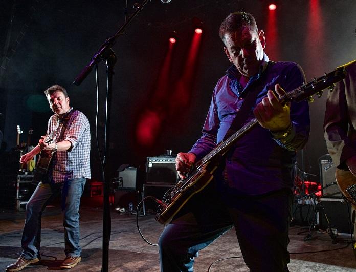Their signature is rooted in the blending of two very distinct leaders – Phil “Swill” Odgers and Stefan “Cush” Cush (the nicknames suggest shanty-chanting navvies) - whose harmonising voices play off each other, as songwriters and singers, like any other chalk-and-cheese double-fronted band you care to think of. Where Odgers supplies the vocal velvet, Cush has a mallet for a larynx. (The differences – folkie v rocker - were nicely laid out in their acoustic slots.) Meanwhile, slightly to the side, is the band’s other composer Paul Simmonds (pictured above right), exuding an air of amused detachment on electric mandolin. As often as not it’s Simmonds’ skirling licks which open The Men’s songs before the rest of the band crash in with a satisfying wallop.