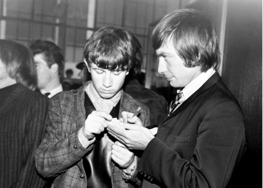 There’s a shot of the six of them running across a railway line in Belfast, running for their lives, Brian Jones at the rear, "Satisfaction" at the top of the charts, and there he is, the one who set light to the whole thing, between Mick and Keith. For a time virtually a sixth member of the band, the teenage hustler-manager with the vision thing who walked into the Station Hotel in Richmond to see the Rollin’ Stones and said hello to the rest of his life, Andrew Loog Oldham is one of the few of his caste of Sixties svengalis to survive the ensuing five decades.
