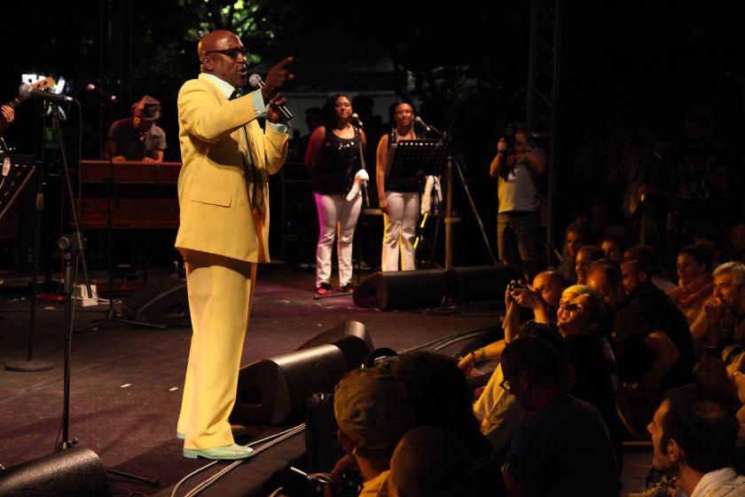 Saturday night found things hotting up with The Bo-Keys backing both Syl Johnson (pictured right) and Otis Clay. Clay is another Hi Records veteran whose biggest hit remains the lovely "Trying to Live My Life Without You". He sings with the grave intensity that characterises deep soul and is quite magnificent. Johnson, best known for his late-Sixties anthem "Is It Because I’m Black", is a wayward (if seminal) figure in American music: starting out as a teenage blues player he went on to make magnificent soul and funk before disappearing once disco took control. Rap revived Sly’s fortunes with dozens of acts sampling his scratchy grooves, and on stage in a lipstick-red suit the pencil-thin musician sings in a voice not unlike that of Bob Dylan (ie, raw and often flat but affecting for all that). He boasts of how many major artists have sampled 1967’s "Different Strokes" (“Michael Jackson, Tupac, Wu-Tang Clan used if for 'Game on a Nigga'”) and is at his best when playing "Is It Because I’m Black"’s taut, blues funk. The Bar-Keys close the night and the veteran Stax records band – they backed the likes of Otis Redding and Isaac Hayes at their peak – are now something of a soul tribute band, covering all kinds of hits à la The Blues Brothers. Fortunately they do still perform "Soul Finger" and "Son of Shaft", but a lot of their set only aims at crowd-pleasing. Which they do.