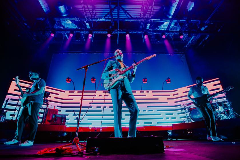 The trio, augmented by synths man Jacob Berry and drummer Benjamin Thompson, started fast, though. They write songs well suited to the weekend, to exuberance and to forgetting any of life’s mundane realities, which is one of the reasons they have continued to enjoy mainstream success in relatively fallow times for guitar bands.