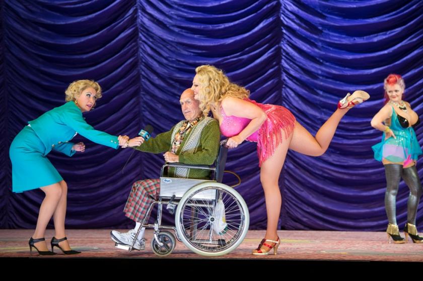 These weren’t just there for show, however, but cleverly thought through. The use of changing costumes for the lead character Anna Nicole, in particular, highlighted her meteoric rise to fame. The garish lighting, which seemed to only have three settings (completely on, bright pink, or completely off) was a constant reminder of Anna’s lack of privacy, with nowhere to hide, not even after death.