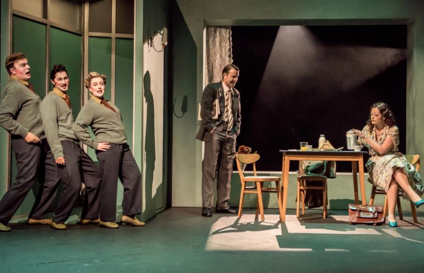 The loveless couple of Trouble in Tahiti were Charles Rice as Sam and Hanna Hipp as Dinah, with the scat-singing trio (Chloé Hare-Jones, Harun Tekin and Ross Cumming) interacting both with them and later with Elle (the protagonist of La Voix Humaine) and her lost love. In a strong delineated and sung characterization, Bernstein’s lovely A Quiet Place song was Hanna Hipp’s most moving moment, and Charles Rice made the self-regarding, macho adulterer Sam very much his own, particularly in There are men.