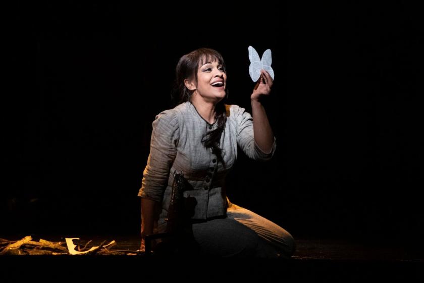 Most of the designs and costumes (by Nicky Gillibrand) suggest the modern day, with only a few explicit updatings—the stepsisters take a selfy when they have dolled up, Cendrillon’s suicide attempt is by overdose. But generally, Shaw retains a timeless, fairytale quality. She adds a young girl as a mute observer—perhaps this is the child’s dream, perhaps she is young Cendrillon—an invitation for Glyndebourne’s (fairly senior) audience to see the story through a child’s eyes. More effective is Shaw’s use of butterflies to symbolise love and freedom: When Cendrillon is transformed by the Fairy Godmother, she steps into a suit bag as if it were a pupa, reappearing in her ball gown.
