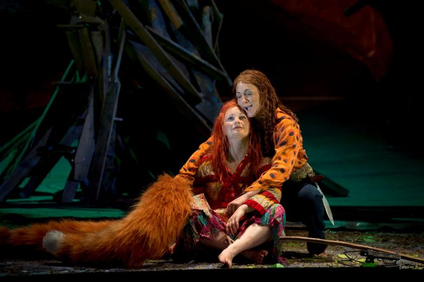 What the composer challengingly called "a merry thing with a sad end" is not, as some past productions have played it, an animal fable for children. Vixen Sharp Ears is taken away from her natural habitat by the gruff Forester, creates murderous mayhem at his lodge, mates, breeds and dies of unnecessary bravado facing the barrel of a poacher's gun; all this can be comprehended and even accepted by kids. They're less likely to be impressed by ageing humans grappling with illusions and disillusionment - a downward spiral from which the Forester, unlike his village pals, eventually escapes by going back to nature.