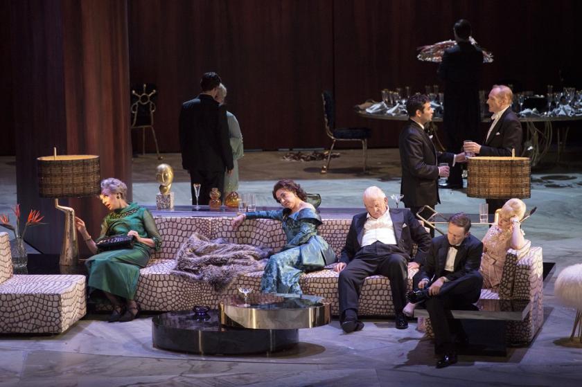 That has to be in large measure due to a superlative cast working within Hildegard Bechtler's stupendous sets and costumes - again, a mirror to Salzburg if not necessarily to the varied audience which received the work so ecstatically in the more human of the festival venues. Adès and Cairns have reduced Buñuel's main dramatis personae of Big Brother House participants from 19 to a mere 15, which with bit parts for the servants and outsiders makes this an expensive number to maintain in the repertoire.