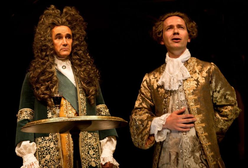 No doubt this sophisticated bagatelle starring Mark Rylance worked like a charm in the intimate space and woody resonance of the Sam Wanamaker Playhouse. The Duke of York's Theatre is one of the West End’s smaller mainstream venues, its proscenium arch is appropriate to the early 18th century operatic world in which castrato Farinelli made a fortune enchanting his audiences, and the recreation of the Southwark gem onstage with its ranks of candles in chandeliers as well as footlights and its pretty boxes has been perfectly achieved by Jonathan Fensom for the transfer of John Dove’s production. Yet I’d rather have been up there with the lucky audience members who got ringside seats on the action rather than some way back in the stalls, where the delivery came across as mostly piano to mezzo forte.