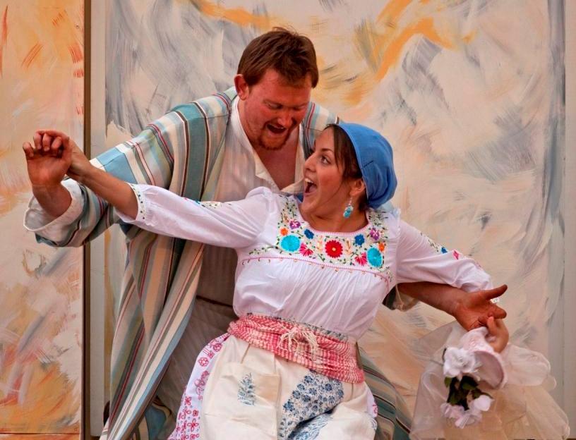 The Beaumarchais story remains the same, as does the structure and the main characters. As for the music, spiritedly played in keeping with the feel of the piece by the Northern Chamber Orchestra, the Festival’s resident band, under conductor Robin Newton, Portugal amply demonstrates his ability to please. This is orchestration of real quality and melody, and he provides a steady stream of pleasing arias and duets. He makes exceptional demands on the principals, especially Susanna. Happily, Emily Rowley-Jones (pictured right) meets them in style, with fearless coloratura. Her duet with Lisa Wilson (Countess Almaviva) in Act two is a highlight. The singing generally is of a high standard. Nicholas Merryweather’s Figaro is strong and believable – and he sets an example in making every word clearly audible. Lyric tenor John-Colyn Gyeantey works hard as Count Almaviva and Joanna Seara is a sweet-voiced and perky Cherubino.