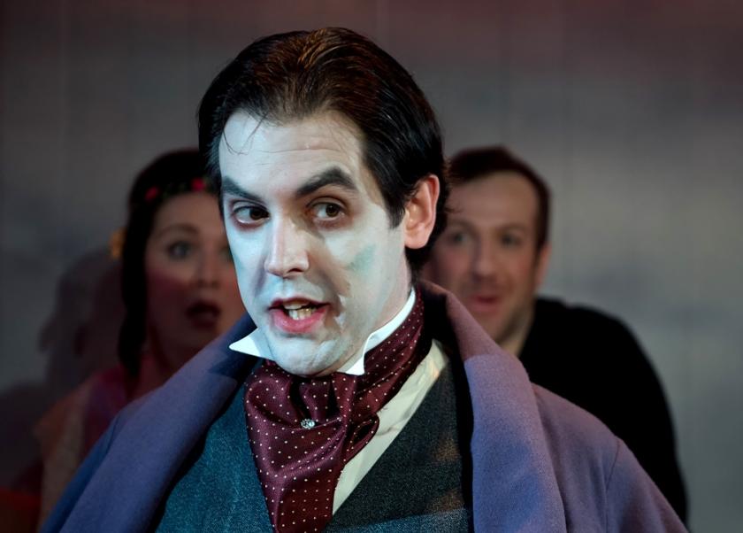 To reveal how a tiny company in a small space, albeit smartly designed by James Perkins and variously lit by Nicholas Holdridge, manages the scene in which the Murgatroyd ancestors – at least in the original libretto – come to life and step out of their picture frames would be to spoil half the fun. Suffice it to say that, like everything else in this clever, intelligent approach, the effect is simple, rigorously executed and laugh-until-you-cry funny. Maybe we miss Sullivan's crafty homage to Berlioz's more outlandish orchestration in "The Ghosts' High Noon", but Eaton more than compensates with what sounds like an improvised Liszt-style melodrama while abducted maiden Hannah assails her captor. Full marks, too, for nifty, likewise amusing choreography by Phillip Alden.